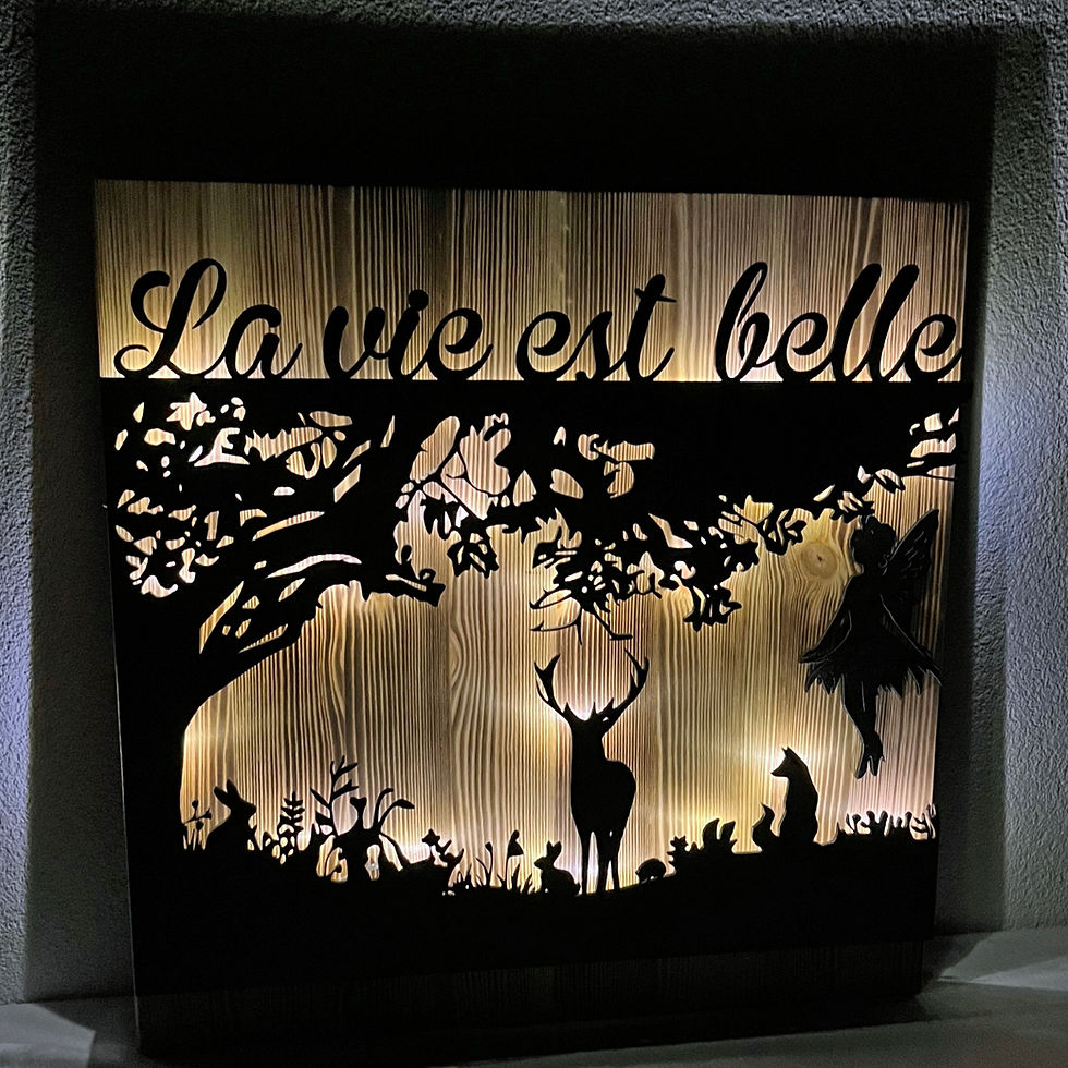 Plongez dans un univers où la nature rencontre la lumière. Nos tableaux lumineaux en bois sont bien plus que de simples décorations: ce sont des fenêtres ouvertes sur des paysages apaisants, des instants figés dans le bois, éclairés par une douce lumière qui donne vie à chaque détail.